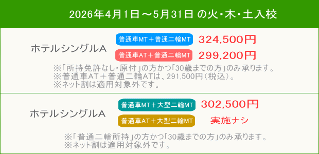 注)予約完了・書類送付後に変更(車種・入校日・人数・部屋タイプ等)が生じた場合はネット割の対象外となります。